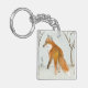 En vattenfärgsmålning av en röd räv på en jakt i vintern lägger till nyckelkedjan!