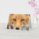 Vacker rödräv ögon visas på detta vilda djur - naturskydd/hälsningskort. Röda rävar finns i hela Nordamerika, blomstrar nära skogsmarker, ängar, jordbruksmarker, små städer, förorter och andra livsmiljöer.