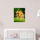 A heartwarming wildlife moment between a red fox mother and her kit, captured in vibrant natural detail. This nature photography print brings warmth, connection, and woodland charm into any space.