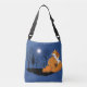 En röd räv sitter bredvid pumpor och höst löv. En del Höst löv flyger mot skogen bakom räven