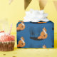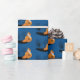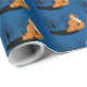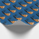 Ett rött rävdjur bredvid pumpor och Höst löv. Vissa Höst löv flyger mot skogen bakom rödräven