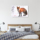 Den vildlevande kanvas, med ett foto av en röd räv i snö och en enda rödhäftsvamp. Perfektens väggdekoration för alla djurälskare.