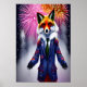 Red Fox i uniform och fyrverkerier | AI Art Poster