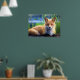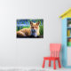 En poster med en färgstark bild av vilda djur och växter av rödräv som ligger i grönt gräs. Den här söta varelsen har mjuk päls och mjuk ögon. Bilden har en drömmande magisk känsla.