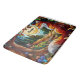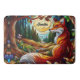 Den här vibrerande designen återger nedfläckadens glasutseende och har en stilig räv bland träd under en gult sol.