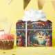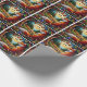 Den här vibrerande designen återger nedfläckadens glasutseende och har en stilig räv bland träd under en gult sol.