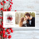 Meddela dina kommande upphöjningar i december, januari eller februari med det naturliga Röda Frosty Berries Winter Wedding Spara datum meddelande-fotokortet. Den här eleganten och den festliga anpassningsbarna Wintery Giftermål Behålla i fotokortet från Datummeddelande innehåller ett naturfotografi av röda bär som hänger på träd efter en morgonfrost.