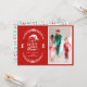 Ett rött humoristiskt fotokort med helgdag "Fa la la la llama" med en söt, handritad Llama-illustration omgiven av en julkrans.