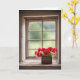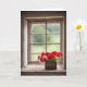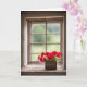 Red gerbera daisy bouquet in rustic farmhouse window bakgrund. All text kan ändras.