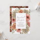 Eleganten inbjudningskort för möhippan har röd gerbera/daisy, ro i orange och dahlias i vitt i vattenfärg på vit bakgrund. Baksidan har en burgundröd bakgrund med blommönster. Anpassa den efter dina behov. Du hittar matchande produkter i min butik.