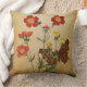 Mycket söt rött och gult vintage geum illustration på en krämkudde, med en späckad fjäril av orange. Den här kudden kommer att göra kostym till en dekoration av alla slag, från klassisk elegans till land-stugan stil.
