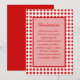 Dessa söta inbjudningar och samordnande artiklar trycks med en röd gingham mönster. Klicka på "anpassa" om du vill ändra den vita bakgrunden till din favorit färg.