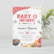 Red Gingham Baby-Q Shower Invitation Inbjudningar