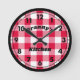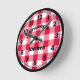 Lägg till ditt eget ord till den nya röda och vita gingham mönster-klockan. Det här är en underbar köpeaccent!