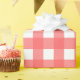 A repeating gingham pattern made of evenly spaced square blocks in shades of red and white.
