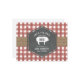 Fästad röd gingham-design med spjälremsor på framsidan. Framsidan har en schalkboard-geometrisk utformning med gris-silhuett. Anpassa texten på framsidan och baksidan.