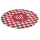 Röd monogrammad gingham mönster. Om du vill återskapa monogram med det här teckensnittet stil för initialer skriver du den gemena brev, versaler och sedan gemener igen.