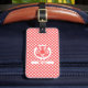 Red Gingham Play med Red Tiger Head och Namn Bagagebricka