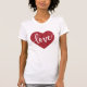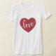 Den här hjärtans t-shirt-skjorta har ett glatt rött glitter-hjärta med ord kärlek i ett typsnitt som hanteras med roligt. Perfektens skjorta för Alla hjärtans dag.
