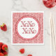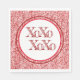 Glitter i röda nyanser omger flera stora cirklar med "XOXO XOXO" i mitten av den vita cirkeln. Titta noga så ser du att glitter är gjort med hjärtformer. Det röda och vita temat ge en klassisk Alla hjärtans dag känns för dessa pappra blöjor.