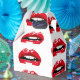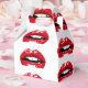 Red glossy läppar på den vita mönster-bakgrundsdesignen.