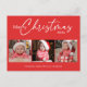 Röd jul 3-foto-hälsning-vykort med texten "God jul 2024". Anpassa med året, dina foton, namn, adress och till och med ditt eget budskap. Kontakta mig om du behöver hjälp med dina anpassningar eller om du vill begära ytterligare matchning eller samordning av Zazzle-produkter för din julhelg.