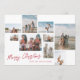 Modern Anpassningsbar Text Red God jul 9 Photo Collage Helgdag Card. Det här trendiget innehåller en fotokollage med 9 familjefotografier på framsidan med anpassningsbar och bakgrund.