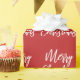 Den här eleganten som omsluter pappra innehåller ord "God jul" i penselteckensnitt på röd bakgrund.