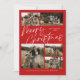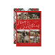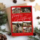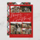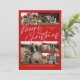 Red God jul Calligraphy Script 5 Photo Helgdag Card har ett modernt calligrapy-skript på framsidan, tillsammans med tre foton, och en julklapp på baksidan.