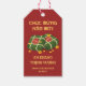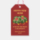 Add a touch of elegance to your holiday gift baskets with these double-sided Vietnamese Tet gift tags. The front features a bold red and green Bánh Chưng design with "Chúc Mừng Năm Mới" in gold lettering. The reverse side offers a "Happy New Year" message with a peace and prosperity wish, along with a customizable field for your family name. These tags are perfect for attaching to traditional gifts like "Mứt Tết" (candied fruits) or tea sets. Available in both square and standard tag shapes to fit any package size for the 2026 lunar season.