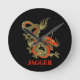 A fierce black Chinese dragon outlined in gold decorates this wall clock. Red accents highlight the dragon's jaw, head and spine. Your name is written in bold gold below.