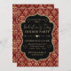 Red & Gold Heart Damask Valentine's Dinner Party Inbjudningar
