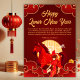 Send blessings of prosperity and joy with this elegant Lunar New Year card. The design showcases a graceful red horse against a rich red backdrop with gold cloud flourishes and an auspicious round emblem - classic symbols of luck, success, and a bright path ahead. Perfect for Chinese New Year, Spring Festival mailings, and business or family well-wishes. Whether you’re celebrating the Lunar New Year or sending seasonal blessings of harmony and prosperity, this refined red-and-gold card delivers timeless style with a modern touch.