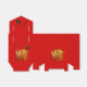 Sammansättning med ett gammalt, traditionellt kinesiskt pappert snitt av en Ox + ett litet modernt bokstäver för OX 2021 och kinesisk Ox Ideogram-symbol på en liten svart cirkel. Utformning på tält med röd bakgrund. Finns i kub-, gable- och take-out-förmånslådor. Matchande hälsningskort, vykort för helgdag, inbjudan, party-förråd med mera. Perfekt för kinesiska nyåret Ox 2021 eller födelsedagen (personer födda under Ox-året).