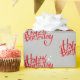 Roligten Red grattis på födelsedagen med vita stjärnor på gråttets bakgrund. Bakgrunden till färg kan ändras.