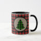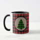 Bakgrunden till detta festliga mugg är en röd och svart buffel som pläderar mönster. I mitten på varje sida finns en banderoll med en passande grönt och en svartvit bild av Julgran. Färgfull! Se till att se matchande produkter i vår butik.