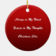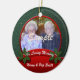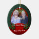 Kom ihåg din kära under julhelgen med den här röda och grönt-hornhinnans minnesprydnad. Anpassa med information och foton. Om du behöver hjälp kan du skicka e-post till shutterbug600@yahoo.com