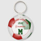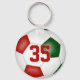 Den här enkla och personliga nyckelringen för fotboll har en realistisk bild av en fotboll som har rött, grönt och vita paneler, där du kan anpassa idrottsmannens namn, jersey-nummer, team & mascot namn och år på framsidan och i monogram eller i olika brev på baksidan - av katz_d_zynes