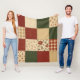 Red Grönt Patchwork Quilt Rustic Farmhouse Blommig Fleecefilt
