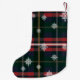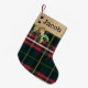 Rustic Red och grönt har gjort julklapp. Du kan anpassa lagret med ditt namn. Den pappra topptrimen med fingersvarta knappar läggs till för att skapa en ytbeläggning. Lagerhållningens baksida har ett rött och grönt och ett vitt snöflinga mönster. Bild efter Moodthology Papery.