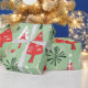 Röd och grönt: den traditionella julen färg, här i skuggor och former som var roligt och karakteristiska för tiden före 1950-talet. Från 1940-talet, inklusive betoningen på geometriska former som antyder rymdåldern, ett intresse och arv som delvis härrörde från 1939 års världsmässa. Här är söt vattenfärg, något barnliknande versioner för din vinterförpackning papper.