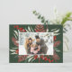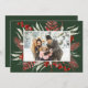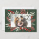 En elegant julkort för att skicka semesterhälsningar till din familj och dina vänner. Den enkla utformningen har ett mörk grönt kort med en vattenfärg ram av botaniska produkter, gröntar och bär på vintern och har en mörk grönt bakgrund. Anpassa ett personligt meddelande på baksidan med ett favoritfoto på framsidan.