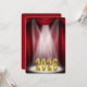 Guld 2025-texten i strålkastarljuset med röd scenridå för inbjudan till studentfest. All text kan ändras.