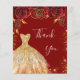 Observera att tackkortet är pappert och mycket tunt. Kuvert ingår inte. Du kan besöka vår butik om du vill ha fler tackkort (samma design). En feminin och elegant-tackkort. En röd bakgrund med faux guld glitter, sparkler, röd ros och en gyllene klänning. På framsidan finns ett skript med stora bokstäver och texten: Tack. Tillbaka: Anpassa och lägg till tackkort och namn. Namn är skrivet med ett modernt handskript i stil.