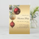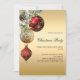 För en jul party med familj och vänner. En faux guld tittar bakgrund. Dekorerad med röda och guld-bubblor och lite grönt och en gräs-kon. Anpassa och lägg till informationen.