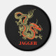 En kraftig svart kinesisk drake som skisserades i guld dekorerar denna magnet. Röda accenter belyser drakens käke, huvud och ryggrad. Ditt namn skrivs i fet guld nedan.