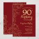 Red Guld Blommigt 90:e Födelsedagsfest Inbjudningar