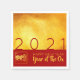Modern design med gyllene struktur-pappra (utskriven bild) med stora 2 021 i rött + litet Ox-ideogram med papper skärning + Ox-ideogram med gult GOTT NYTT ÅR och Ox-år mot röd bakgrund. Utformning på papper napkin med röd bakgrund. Matchande papper plåt, hälsningskort, vykort för helgdagar, inbjudningar, hantverk, party-förråd och mycket annat... Perfekt för ett tidslöst och modernt kinesiskt nyår för Ox 2021.