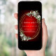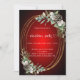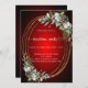 En röd övertoningsbakgrund. En ovalfaux guld ram som dekorerats med koner, vita berger och grönt gräs. Anpassa och lägg till informationen. Vit text.