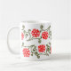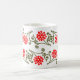 Ett elegant kaffe mugg med en återupprättad vintage som etsar daisy och krymper inslag i rött och gold.